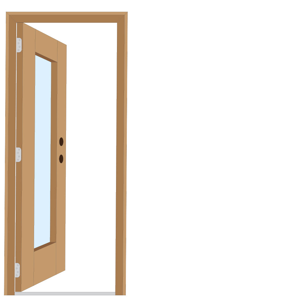 Right Inswing: When standing outside the home and facing the door, a right inswing door is hinged on the right side of the door frame, and it swings inward toward the interior of the home.