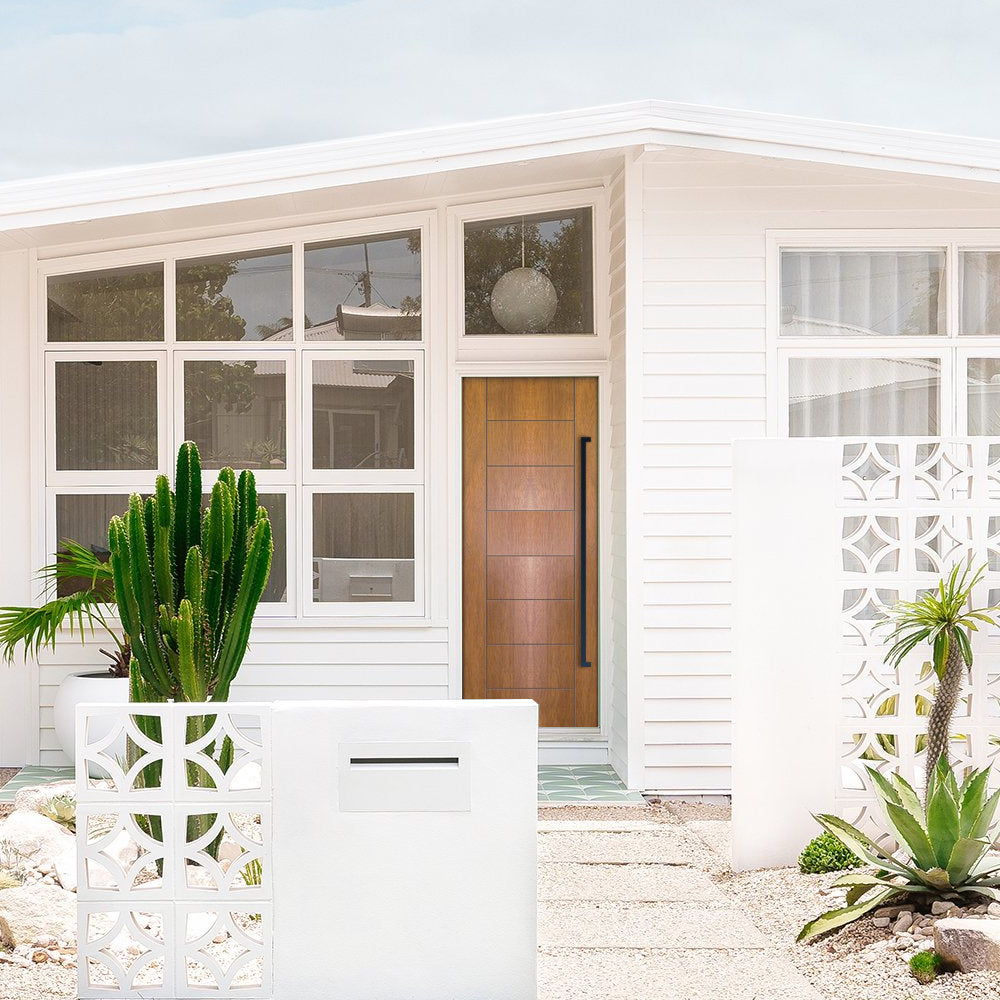 Chevron FG | Flush Fiberglass Entry Door with Modern Chevron Design, Mahogany Wood Grain Skin