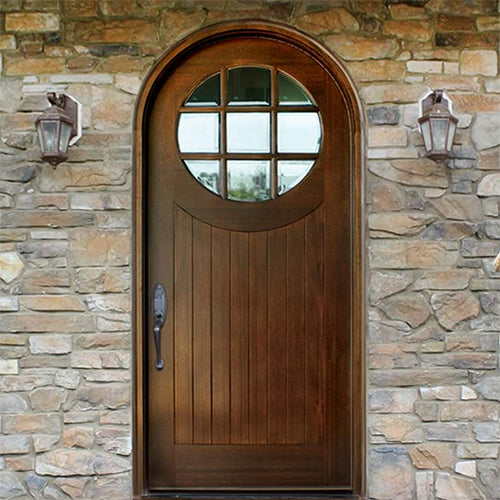 Flush Fiberglass Entry Door with Modern Chevron Design, Mahogany Wood Grain Skin